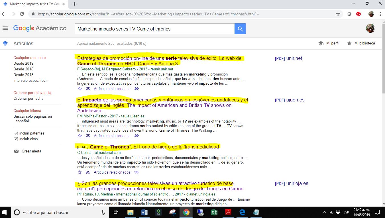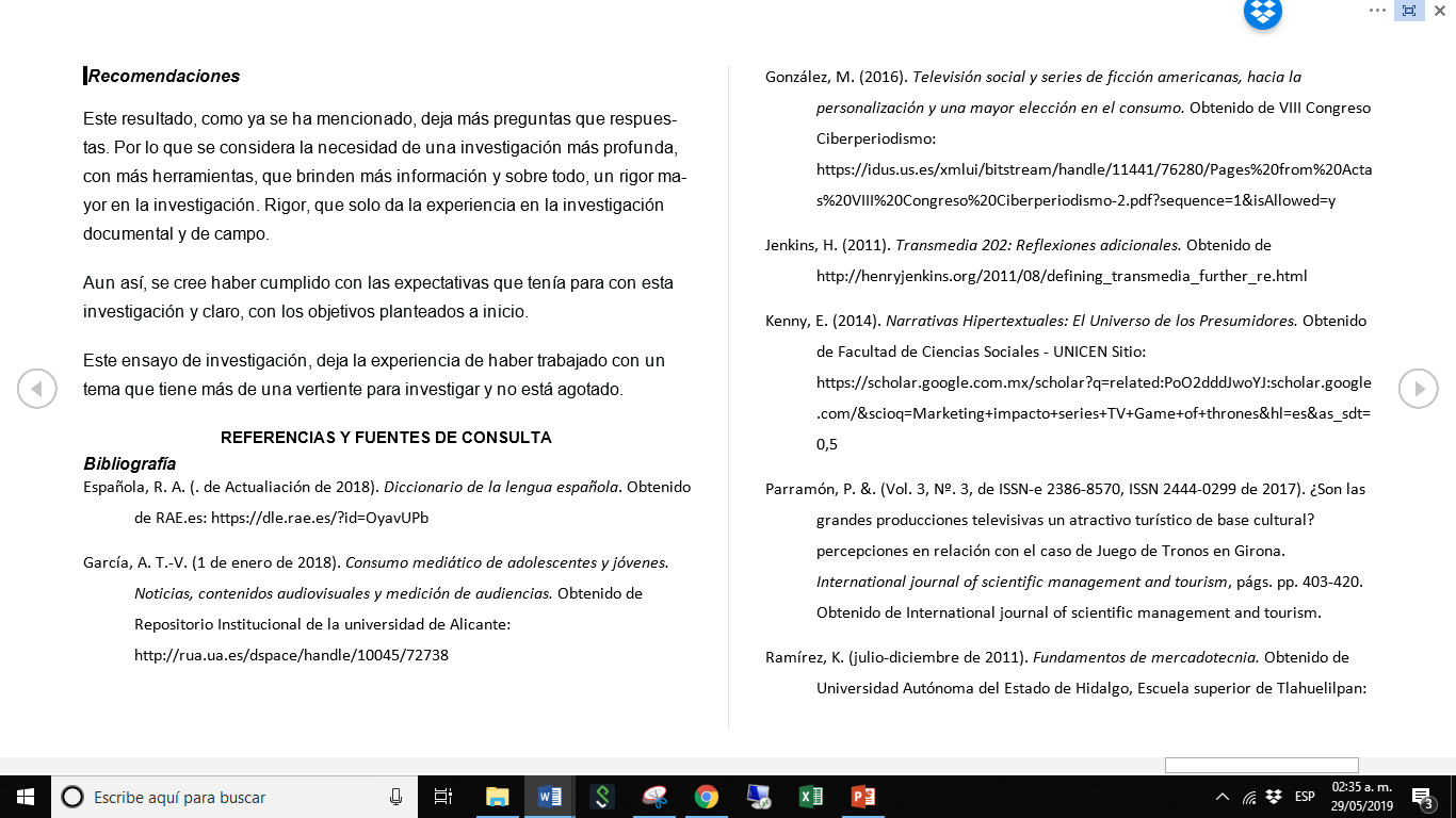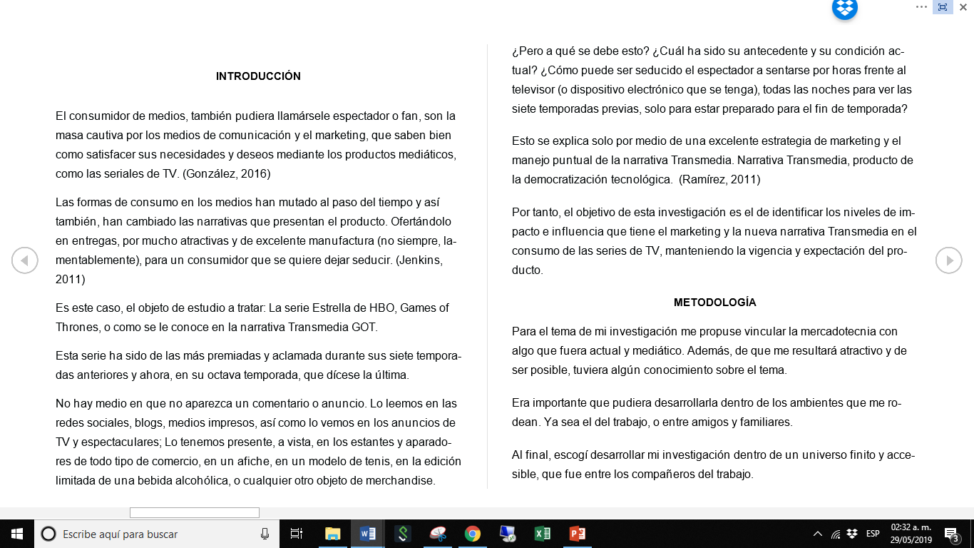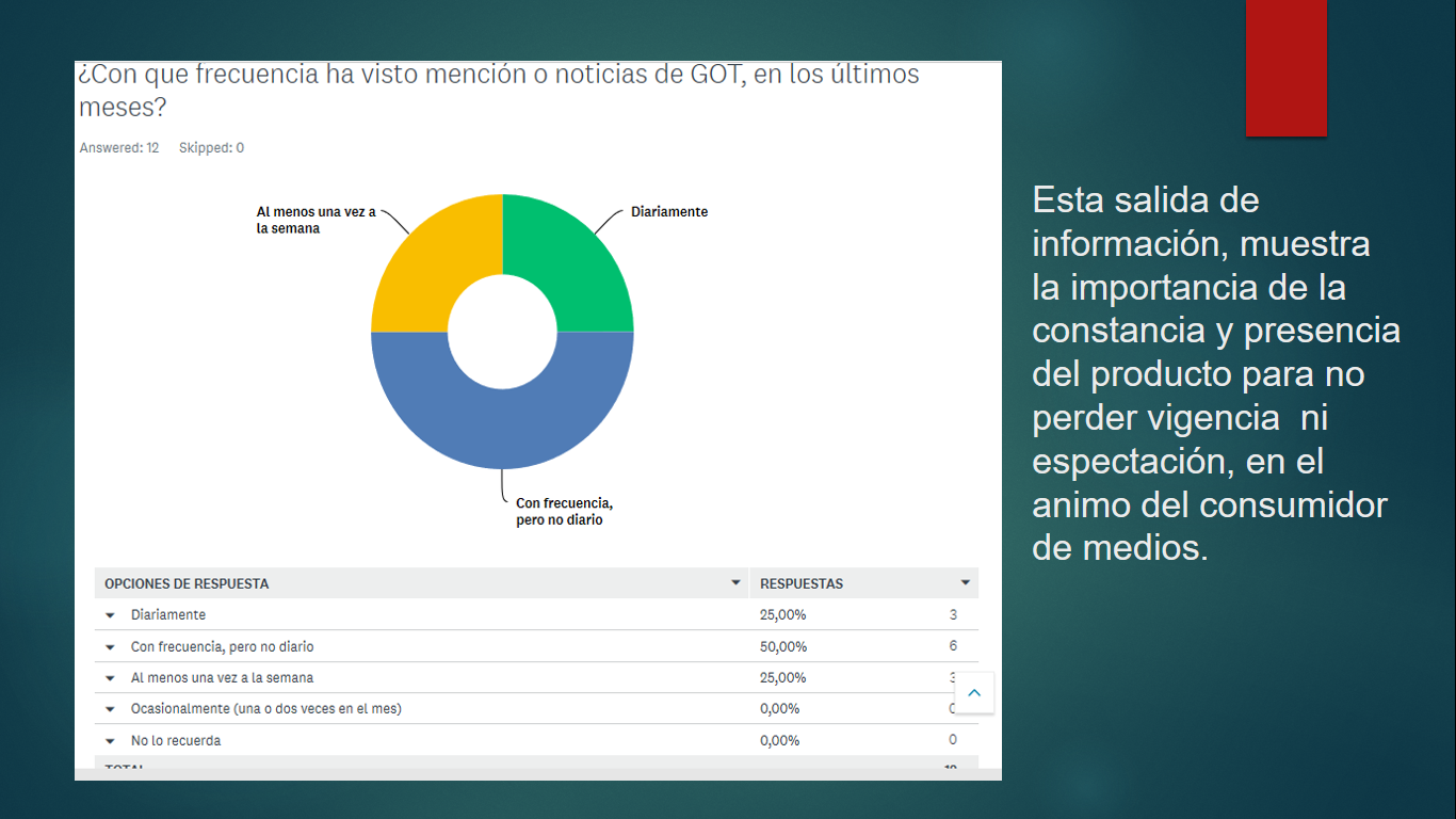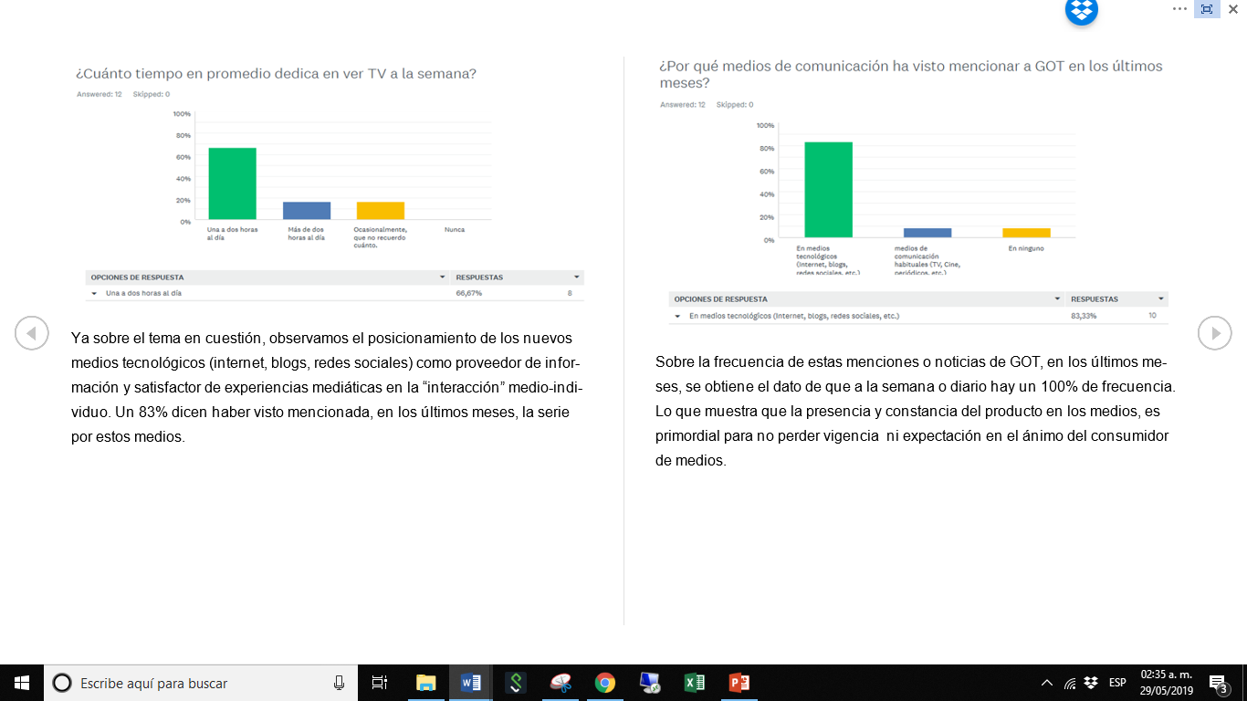 Impacto mediático del marketing para la última temporada de la serie de Games of Thrones, en población adulta mexicana (estudio de caso, empleados corporativos de empresa de retail.)